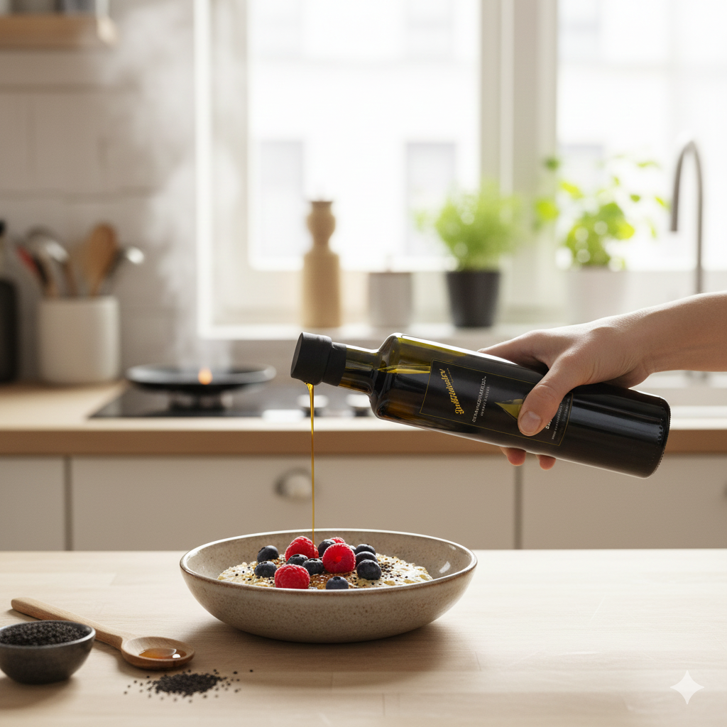 Zwei Produkte, die viele bewusst in ihre Routine integrieren: natürliche Süße aus Medjool Datteln plus kräftiges, ungefiltertes Schwarzkümmelöl aus Ägypten.